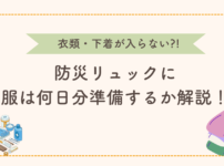 - 防災リュックに衣類・下着が入らない?服は何日分準備するか解説【女性・子ども】- 2025/9/23 - ママ 防災リュック、荷物が多すぎて衣類入れられない!衣類は何日分必要? ママ 何日か同じ服でも、最悪どうにかなるのでは? 防災リュックに食料・水・懐中電灯などを準備している人も、「衣類」 ...